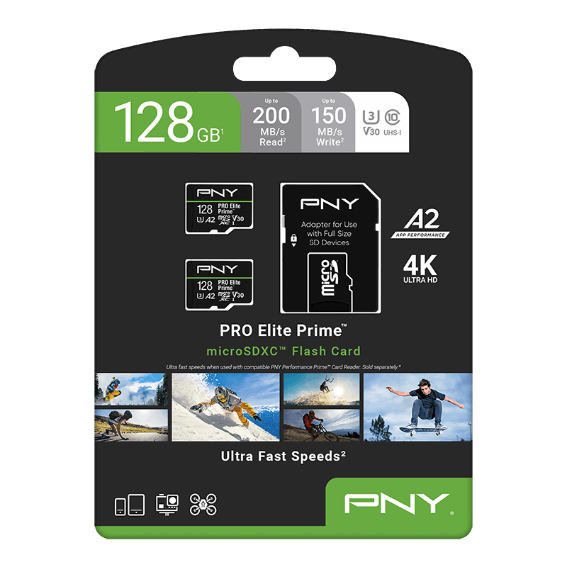 Achieve extreme performance - U3, V30 speed class performance with up to 200MB/s read and up to 150MB/s write when used with PNY Performance Prime microSD Card Reader¹