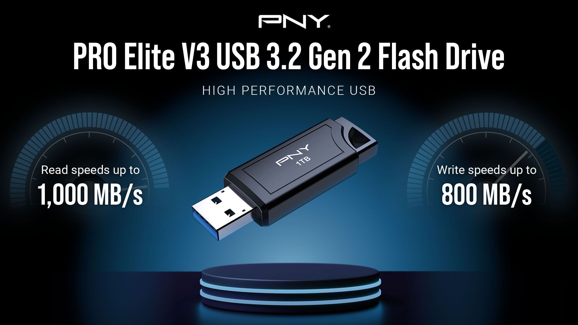 PNY’s new PRO Elite V3 brings a new level of speed and reliability to its high-performance USB product assortment. Exceptional performance improvements boost maximum speeds up to 1,000MB/s read and up to 800MB/s write, achieving speeds 265x faster than standard USB 2.0 flash drives. Experience the elevated performance of the PRO Elite V3’s USB 3.2 Gen 2 flash drive technology to enhance workflows with demanding applications. PRO Elite V3 was designed to be an invaluable asset for content creators, professionals, designers, and gamers who need to store, access, and transfer critical, high-density files such as movies, professional high-resolution photos, video gaming data, and full HD & 4K videos at incredible speeds.2,3