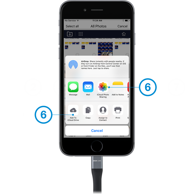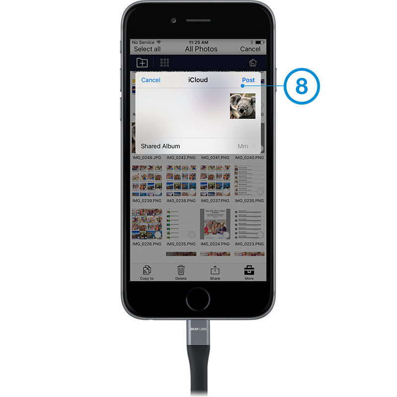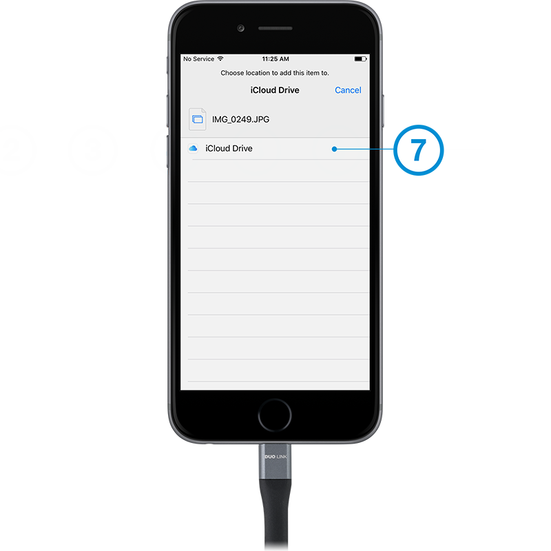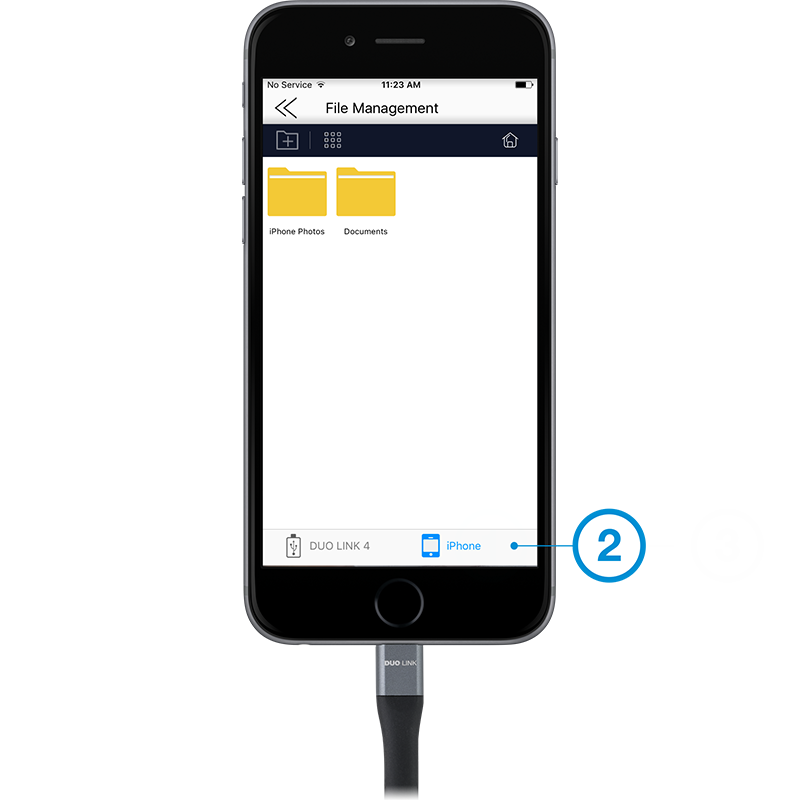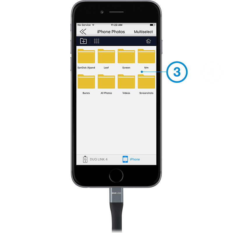 Select iPhone or DUO LINK drive and folder where file is located