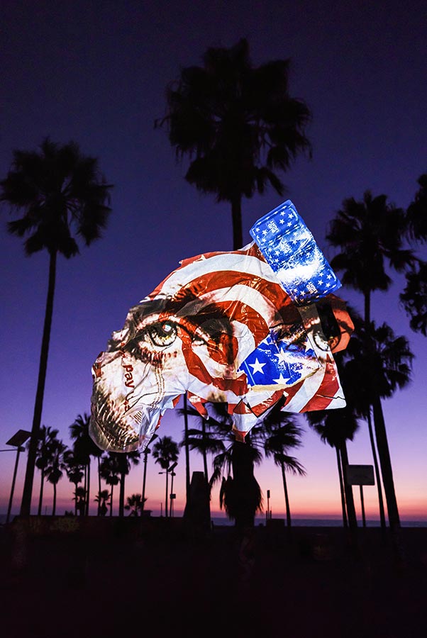 In April 2016, he gave a whole new dimension to Street Art 2.0, with a world first: street art in the heart of the Amazon forest. He photographed the faces of people from the Surui tribe, then projected the images onto trees in the virgin forest.