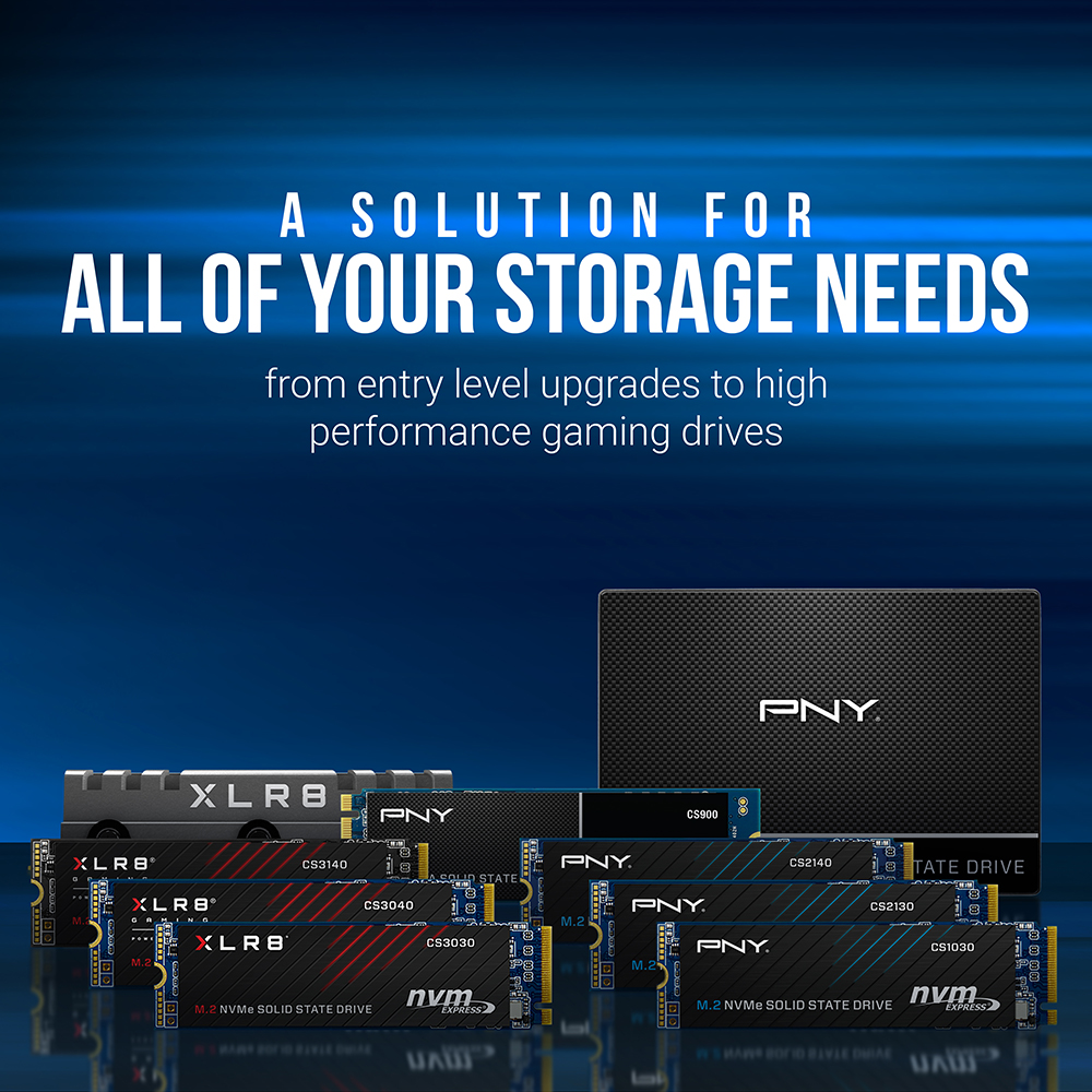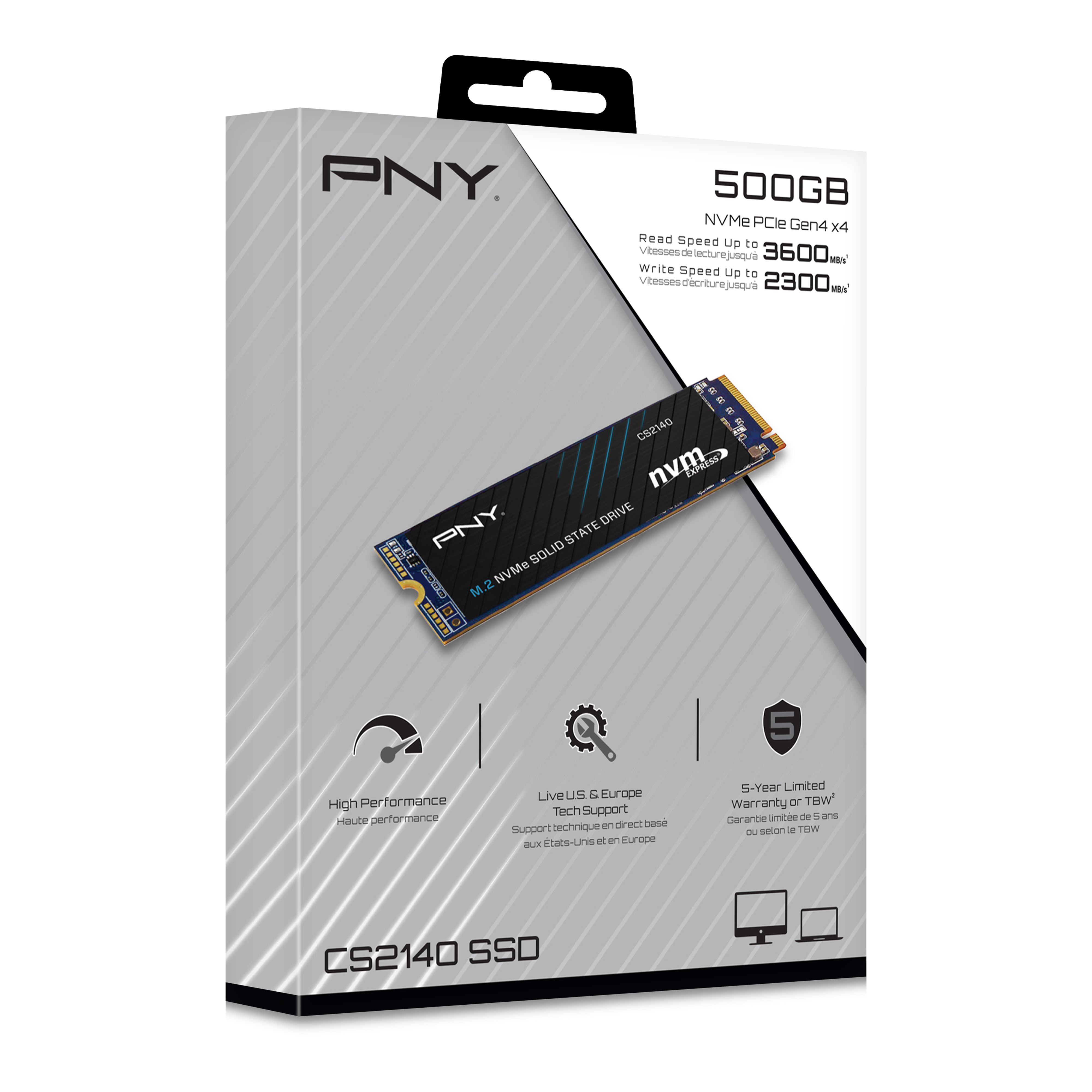 The PNY CS2140 M.2 NVMe Gen4 x4 Solid State Drive is an excellent choice for a mainstream performance upgrade in an NVMe Gen4 enabled desktop or laptop computer. Upgrade to the latest in NVMe technology and experience the enhanced performance of up to 3,600 MB/s seq. read and 3,200 MB/s seq. write speeds. Experience faster boot times, quicker application launches, and improved overall system performance using the CS2140 Gen4 technology. Do more in less time with NVMe Gen4 x4; boot up, power down, and load applications up to 6 times faster compared to SATA based SSD’s. Designed to deliver the performance you demand, and with no moving parts, the PNY CS2140 is highly durable, less likely to fail, and supports a 5-year limited warranty or TBW.