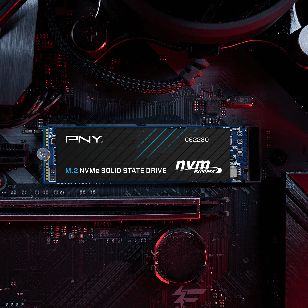 The PNY CS2230 M.2 NVMe SSD is an excellent choice for an NVMe upgrade from a SATA based solid state drive (SSD) in an existing NVMe enabled PC or MAC desktop or laptop computer. The CS2230 drive is designed to be a SATA SSD replacement to help realize faster boot times, quicker application launches, and better overall system performance. Do more in less time with NVMe; boot up, power down, and load applications up to 6 times faster than with SATA based SSD’s. With no moving parts, the PNY CS2230 M.2 NVMe SSD is highly durable, less likely to fail, and supports a 5-Year Limited Warranty or TBW.