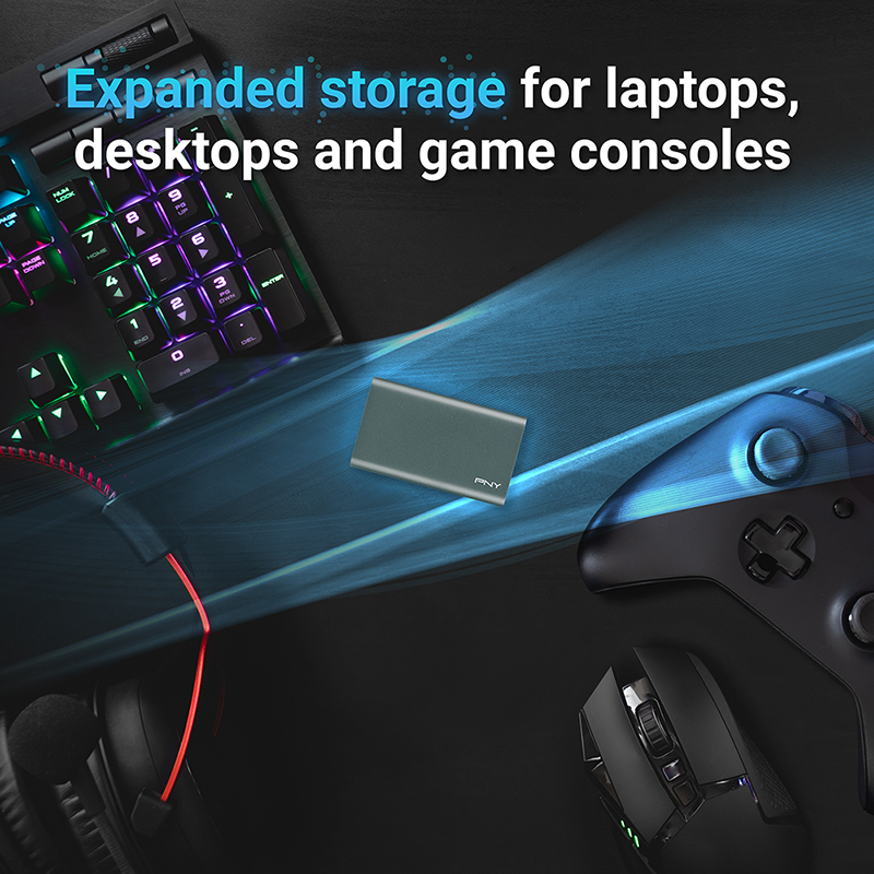 PNY's Elite Portable SSD offers a storage capacity of up to 240GB in a pocket-sized design. This powerful USB 3.1 Gen 1 powered drive offers blazing-fast transfer speeds of up to 430 MB/s*. It's the ideal solution for photographers, videographers, graphic designers or any mainstream computer user who needs to back-up or transfer large files. Take all of your data with you whenever you need it and have the ability to offload it quickly. *For full details visit www.pny.com