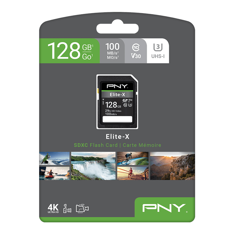 The PNY Elite-X Class 10 U3 V30 SD Flash Memory Cards are the perfect solution for photography and videography enthusiasts. The Elite-X SD Flash Memory Cards provide ample storage for all of your digital content, including HD photos, 4K videos, and more. These SD cards are rated Class 10, U3, V30 with read speeds of 100MB/s guaranteeing that you can quickly and easily transfer content between devices. The U3 technology and V30 video speed makes these cards ideal for burst mode HD photography and 4K Ultra HD videography, allowing you to capture high quality content on your point & shoot camera, DSLR camera, and standard & advanced HD-enabled video camera. The Elite-X Class 10 U3 V30 Flash Memory Cards are ideal for capturing, transferring, and sharing digital content on-the-go.