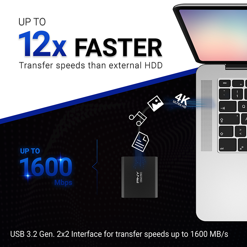 The EliteX-PRO USB 3.2 Gen 2x2 Type-C Portable SSD is the next generation in mobile storage, boasting not only increased storage capacity, but also exceptional performance. It’s designed to be a mobile storage solution superior to previous generations of USB-A portable SSD’s, as well as traditional USB 3.0 flash drives, allowing for even faster transfer and storage of files on the go. The EliteX-PRO USB 3.2 Gen 2x2 Type-C Portable SSD is compatible with both USB-C and USB-A host devices, and the included Acronis True Image Data Protection Software easily backs up data.