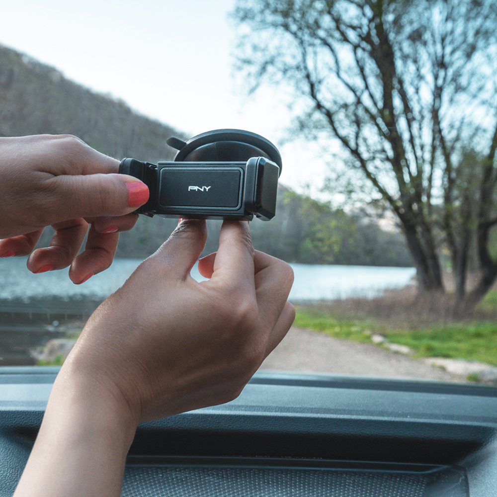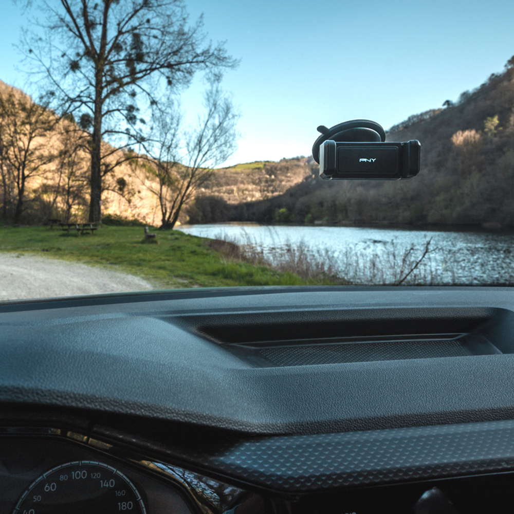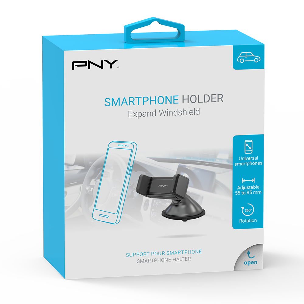 PNY Expand Windshield Holder allows you to use your smartphone in complete safety while driving. The robust suction pad sticks easily to your vehicle’s windshield. 360° rotation enables you to change between portrait and landscape mode – extremely practical when navigating. The extension function makes it compatible with a wide range of smartphones.