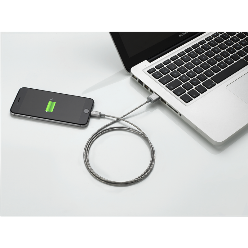 The PNY 4ft Metallic Lightning™ Charge & Sync Cables allow you to easily connect Apple iPhone®, iPad® or iPod® to charge the battery or sync with your media library. Eliminates bunching, tangles, and knots thanks to the metallic and flexible design. With their metallic finish, these cables offer a sleek and modern look. They are available in metallic black, gold, rose gold and space gray, so you’ll be able to choose a cable that matches your iPhone. These cables are Apple certified, through the MFi (Made For iPhone/ iPod/iPad) Program to ensure 100% compatibility with any Lightning device.