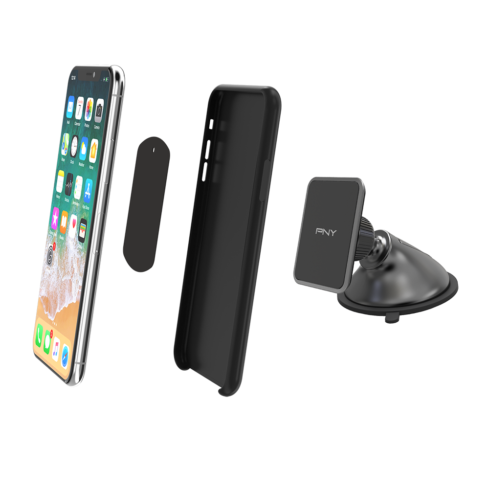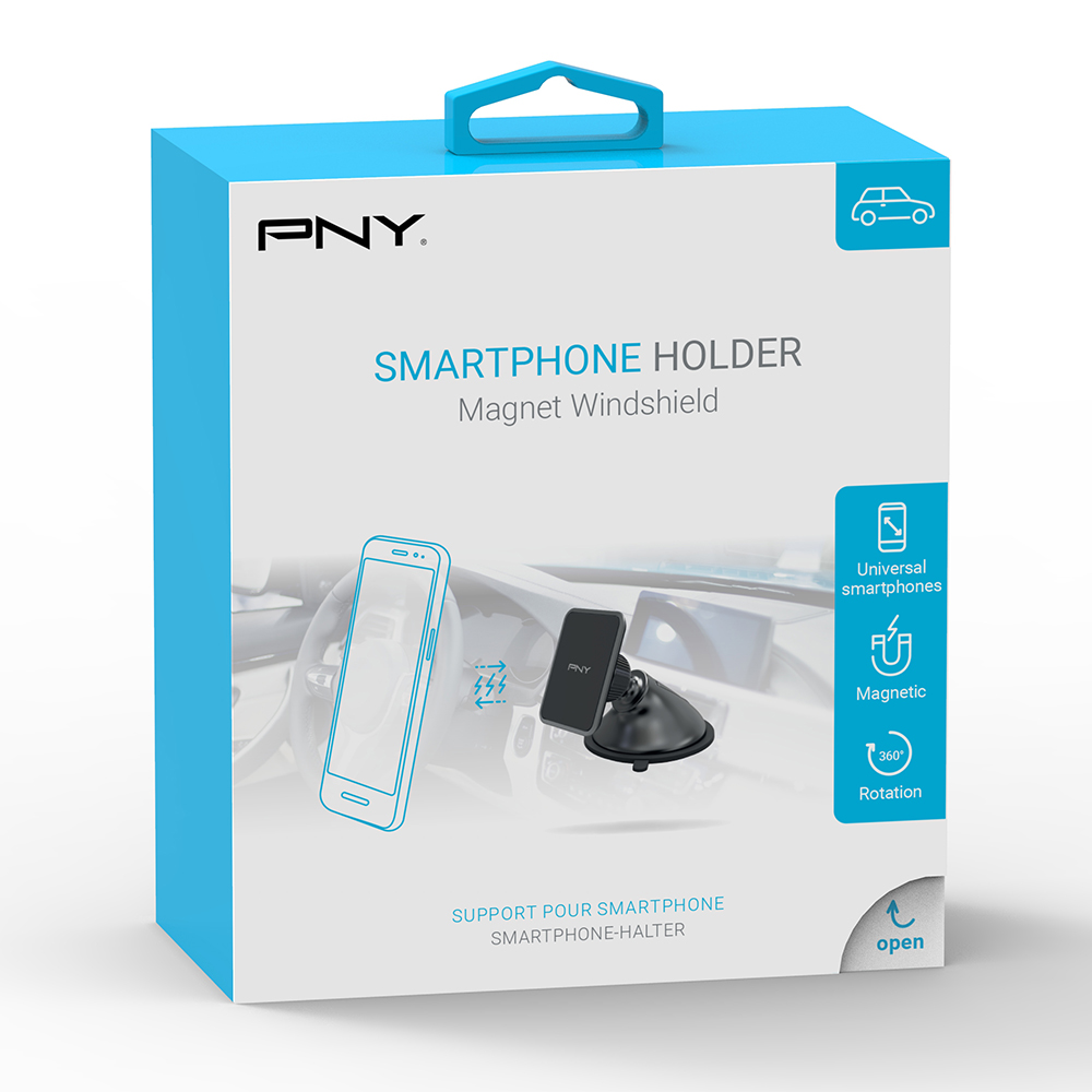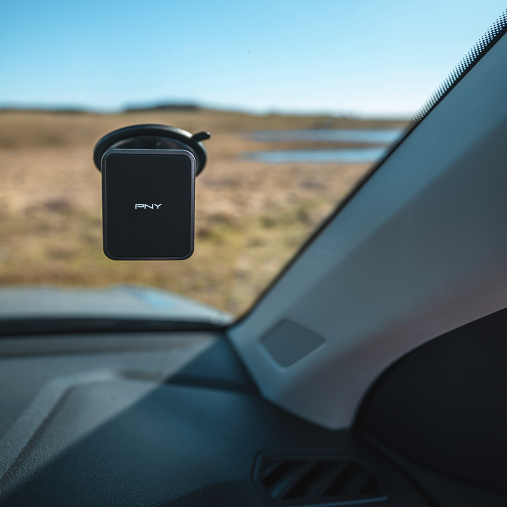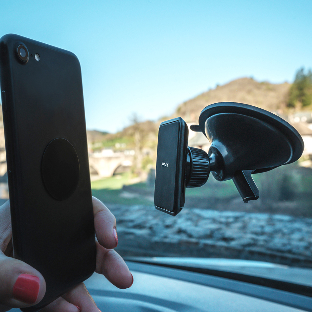 PNY Magnet Windshield Holder allows you to use your smartphone in complete safety while driving. The robust suction cup of PNY Magnet Windshield Holder sticks easily to your vehicle’s windshield. 360° rotation enables you to change between portrait and landscape mode – extremely practical when navigating. The magnetic function makes it compatible with a wide range of smartphones. You simply apply an adhesive plaque to the back of your smartphone or between your smartphone and its protective shell.