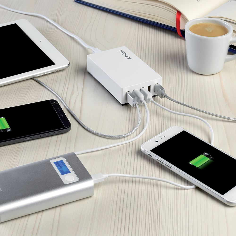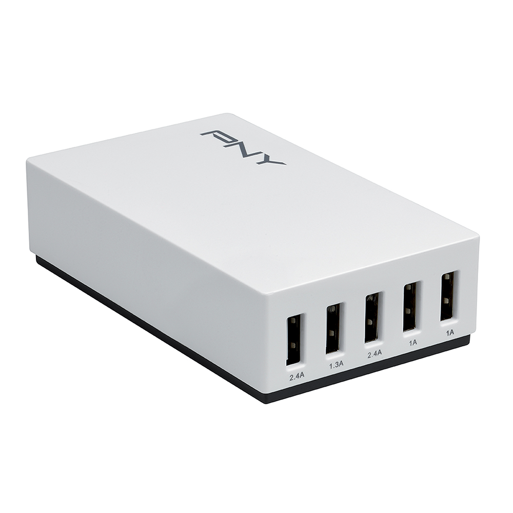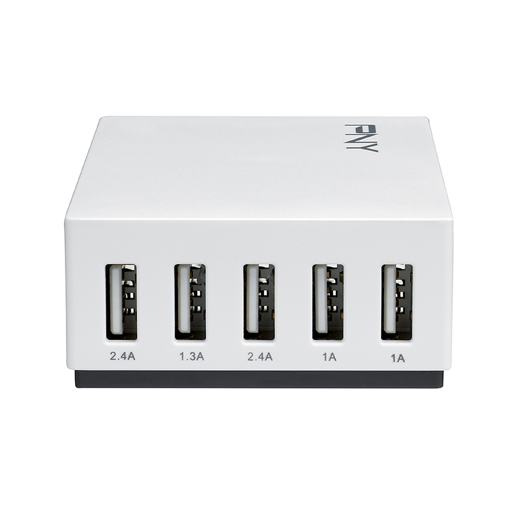The PNY Multi-USB Charger is the perfect solution for our multi-device world. As we have more and more USB-charging devices such as tablets, smartphones, action cams, e-Readers or video game consoles, the need to charge them all results in the multiplication of wall chargers accross our homes. PNY's Multi-USB Charger is one charging station for all. Power at home and in your office.