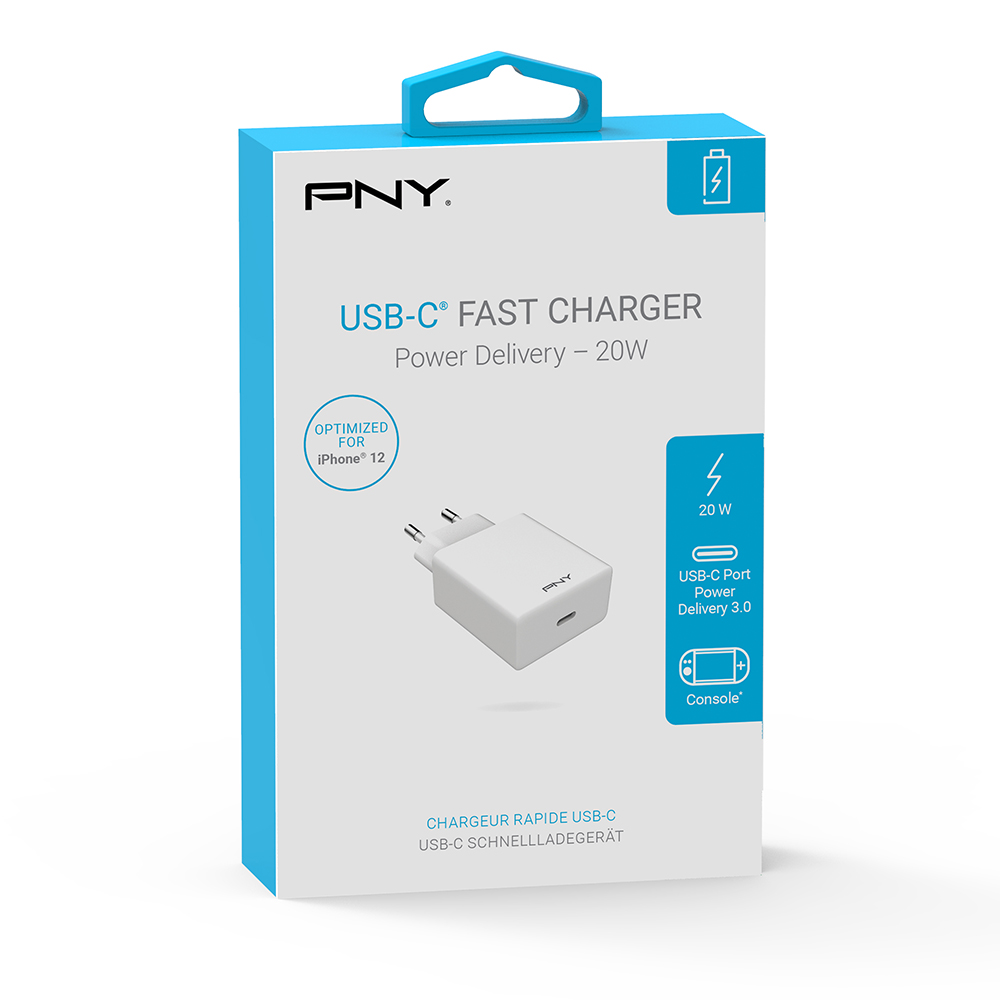 PNY’s Power Delivery Wall Charger is the perfect tool for charging quickly your tablet, smartphone, console or any other USB-C powered device thanks to its 20W charging capability. The Power Delivery 3.0 technology detects the connected device to deliver the right amount of power to charge your device as fast as possible. This ensures fast charging without delivering too much power which could damage circuitry.
