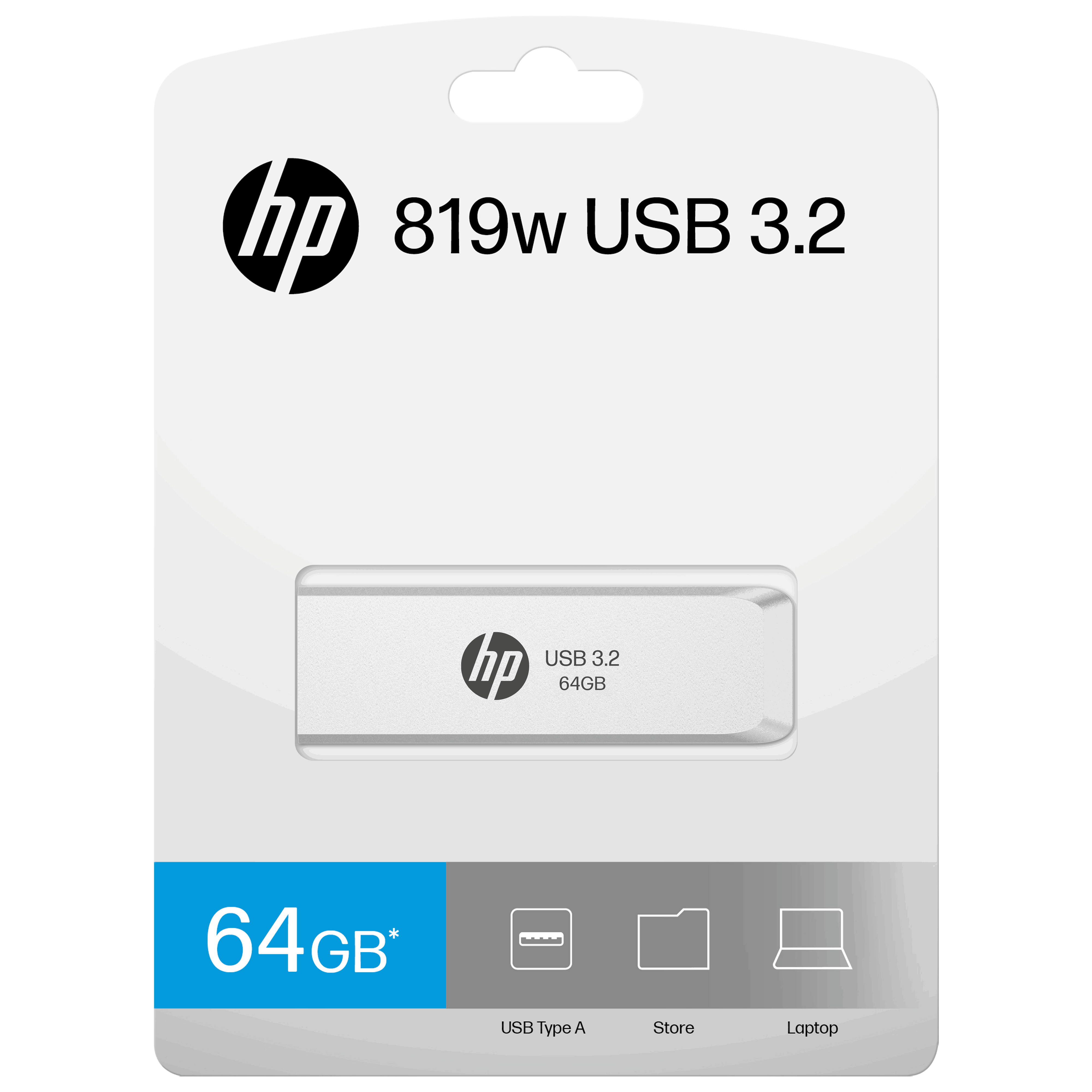 The HP 819w is a USB3.2 flash drive with a matte silver texture referencing HP laptops. The USB connector can slide in and out freely while providing protection from damage. No cap to lose!