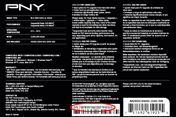 *Drives must be installed in the computer on their respective buses (.e. SATA on SATA and PCIe on PCIe)