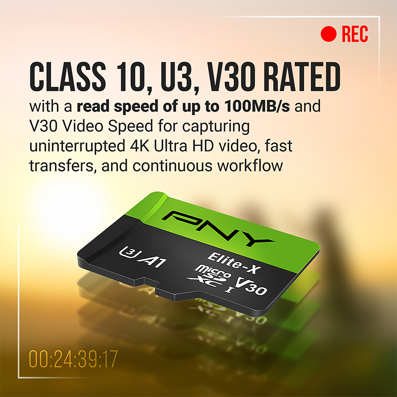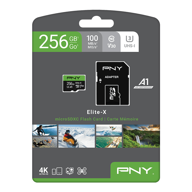 The PNY Elite-X Class 10 U3 V30 microSD Flash Memory Cards are the perfect solution by which to expand on-board memory of mobile devices such as smartphones, tablets, action cameras, drones, and more, allowing users to free up space to enjoy more digital content. The Elite-X microSD Flash Memory Cards are rated Class 10, U3, V30, with read speeds of up to 100MB/s, guaranteeing that users can not only quickly and easily store and share content between devices, but also engage in HD photography and 4K Ultra HD Videography by leveraging the U3 technology. What’s more, the Elite-X microSD Flash Memory Cards feature V30 Video Speed Class, ideal for 4K Ultra HD video at 4096x3072 format, allowing users to capture high quality content on their mobile devices. Rated A1, the PNY Elite-X is optimized for app performance, allows users to run apps directly from the microSD card, delivering faster app launch and performance than ever before.
