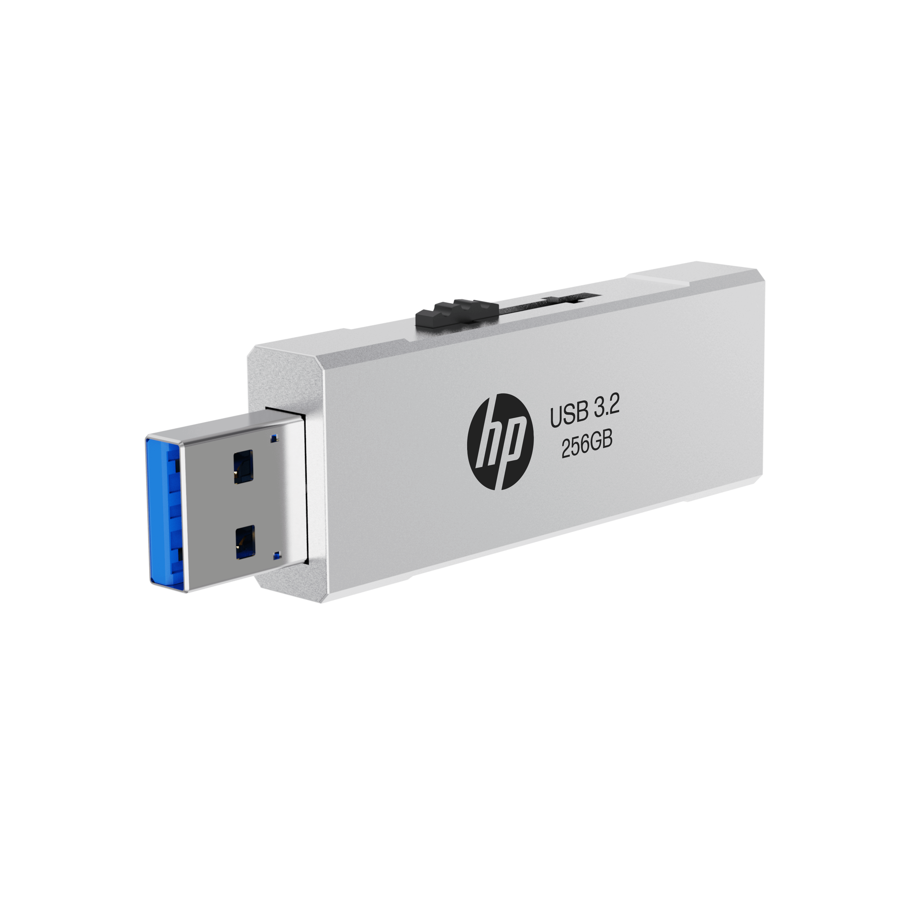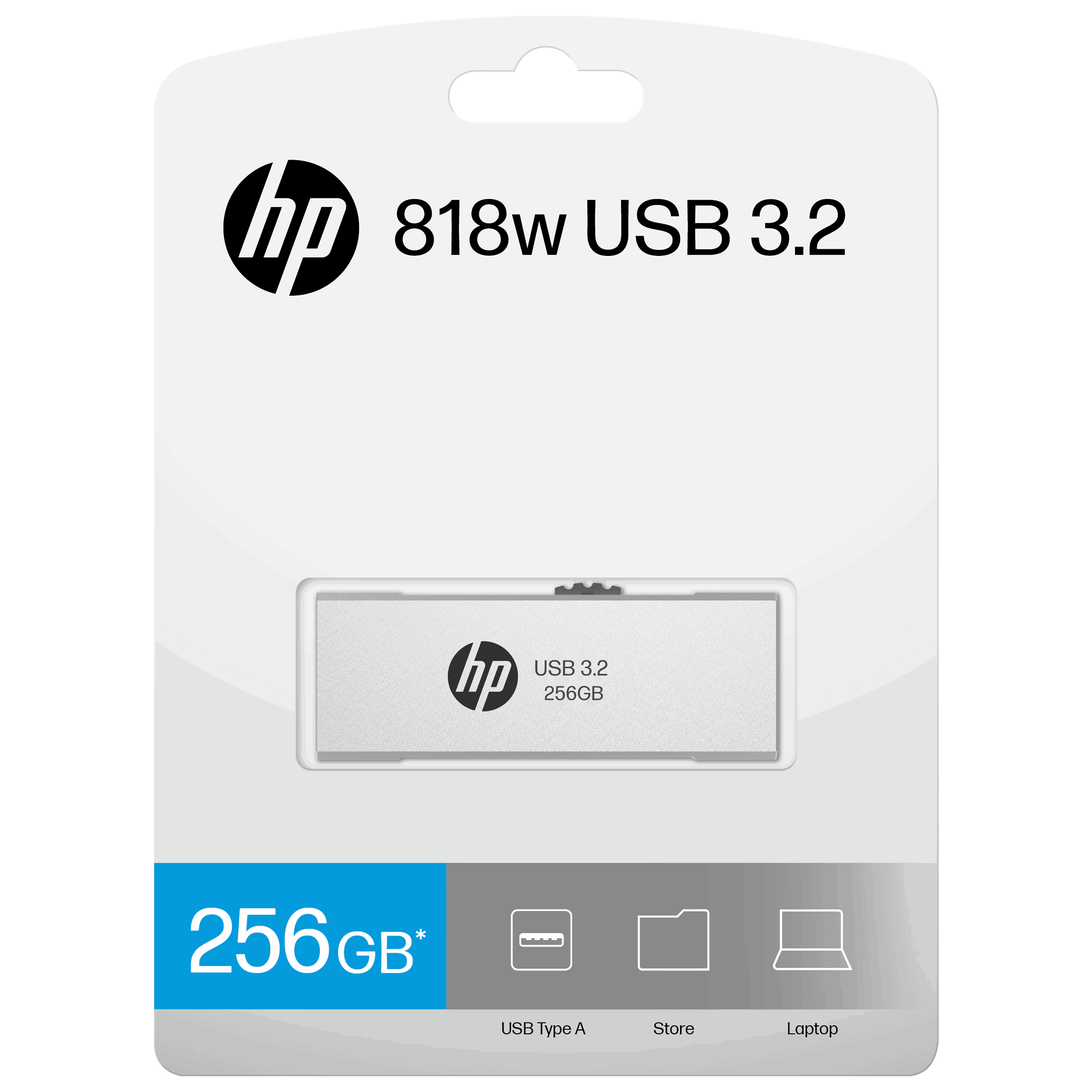 The HP 818w is a USB3.2 Pen Drive with a matte silver texture referencing HP laptops. The USB connector can slide in and out freely while providing protection from damage. No cap to lose!