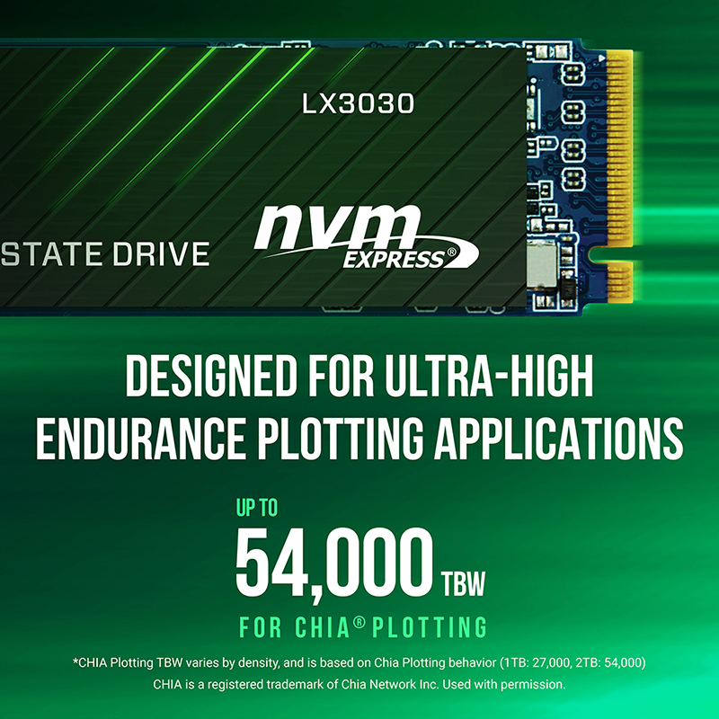 The PNY family of LX drives take advantage of LifeXtention technology to offer a Chia plotting TBW rating of up to 54,000 in the LX3030 2TB. To deliver such a high Plotting TBW, the LX series of PNY SSDs utilize an advanced AI Engine and LDPC to improve NAND endurance, making them the best unit cost for plotting. Without sacrifice, you are able to take full advantage of LifeXtention technology and the up to 18X better endurance by adding an LX drive to your system.