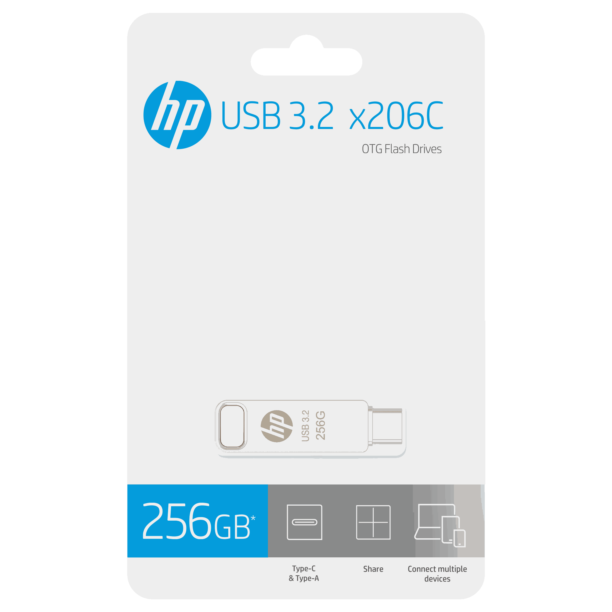 The HP OTG Flash Drive x206c features both a standard type A connector as well as a USB type C connector for next generation computing. The compact size design can store, share and transport your photos, videos, music and more, wherever you go.