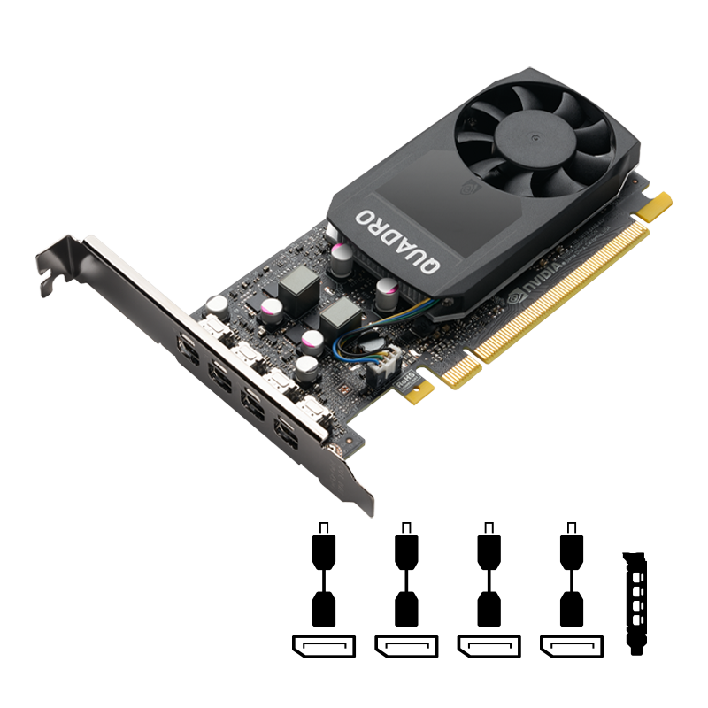 The new NVIDIA® Quadro® P1000 combines the latest GPU architecture and display technologies, delivering up to 60% better performance than the previous generation. Powered by NVIDIA Quadro Pascal GPU technology, the NVIDIA Quadro P1000 is the most powerful low-profile professional graphics solution available, providing professional users with the most memory and best performance available in a small form factor workstation graphics card.