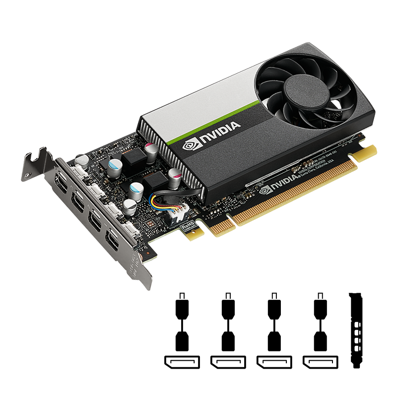 Built with Turing’s vastly optimized 4GB GDDR6 memory subsystem for the industry’s fastest graphics the NVIDIA T600 features 4 GB of frame buffer capacity and 160 GB/s of peak bandwidth for double the throughput from previous generation. NVIDIA T600 is the ideal platform for 3D professionals working with complex 2D/3D models, large datasets and multi display environments.