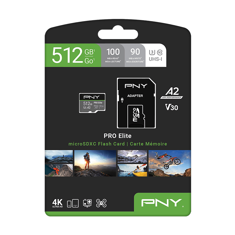 PNY PRO Elite Class 10 U3 V30 microSD Cards offer peak performance for smartphones, tablets, drones, action cameras, surveillance cameras, gaming consoles, and more. With a read speed of up to 100MB/s and write speed of up to 90MB/s, users can quickly capture and share high resolution content. U3 technology is perfect for 4K Ultra HD videography and HD photography, making these cards the perfect solution by which to capture stunning 4K video, HD photos, music, apps, and more. What’s more, the PRO Elite microSD Flash Memory Cards feature V30 Video Speed Class, ideal for 4K Ultra HD video at 4096x3072 format, allowing users to capture high quality content on today's 4K Ultra-HD devices. Additionally, these cards are rated A2 which optimizes the PRO Elite microSD for app performance; allowing users to run apps directly from the microSD card, delivering faster app launch and performance than ever before. With PNY's PRO Elite Class 10 U3 V30 microSD cards, users can experience memories that feel as real as the day they captured them.