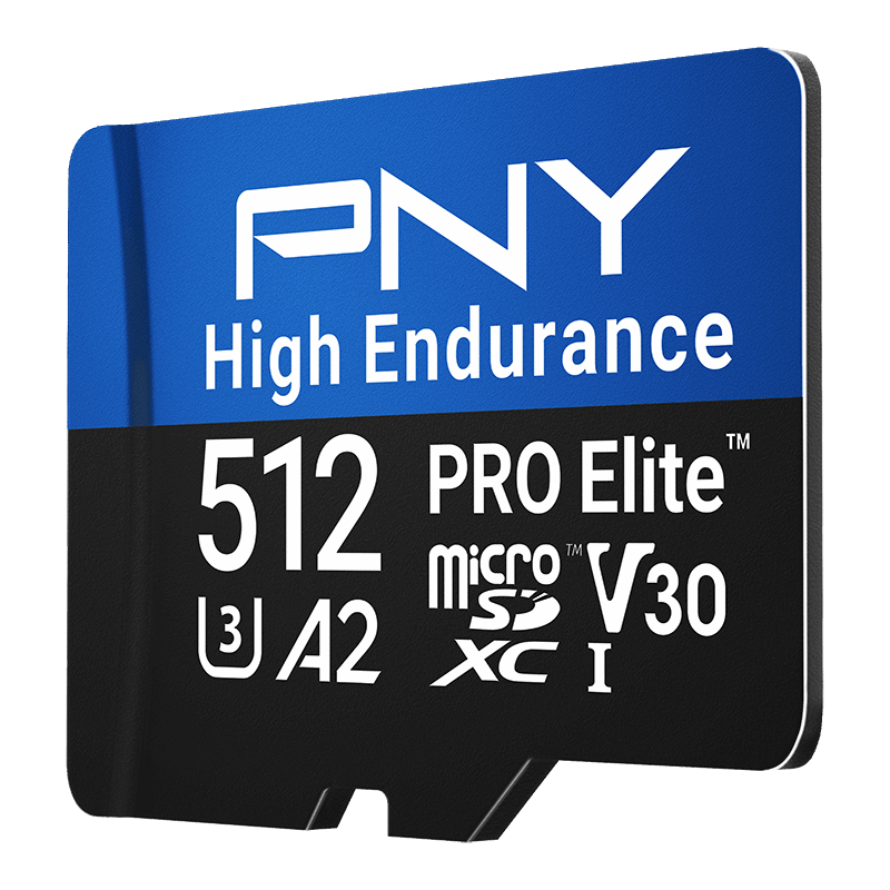 PNY PRO Elite™ High Endurance Class 10 U3 V30 A2 microSD Cards Flash Memory Cards are engineered for capturing continuous recording on surveillance and monitoring devices.4