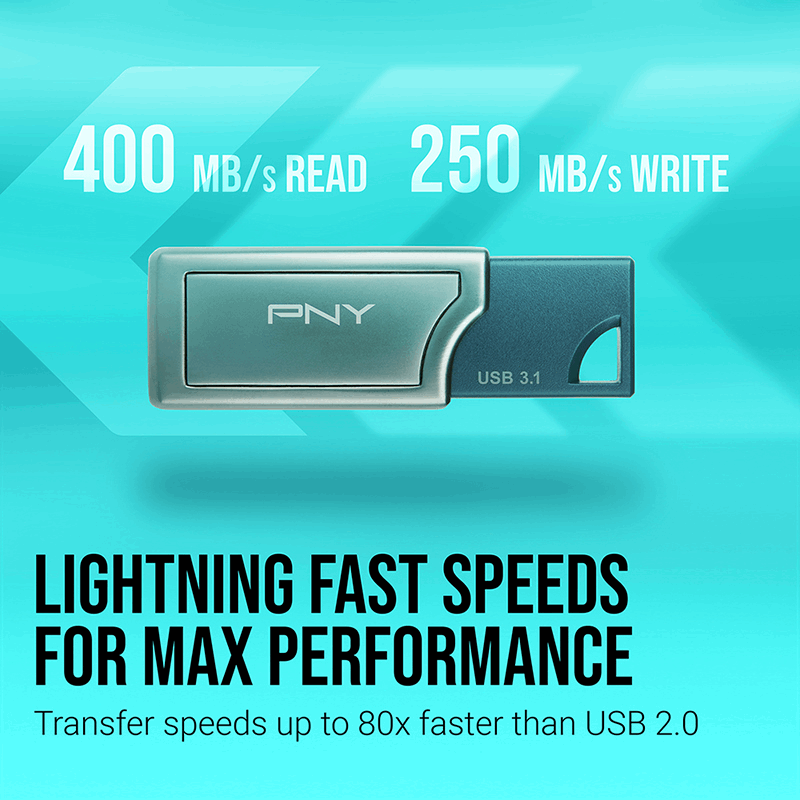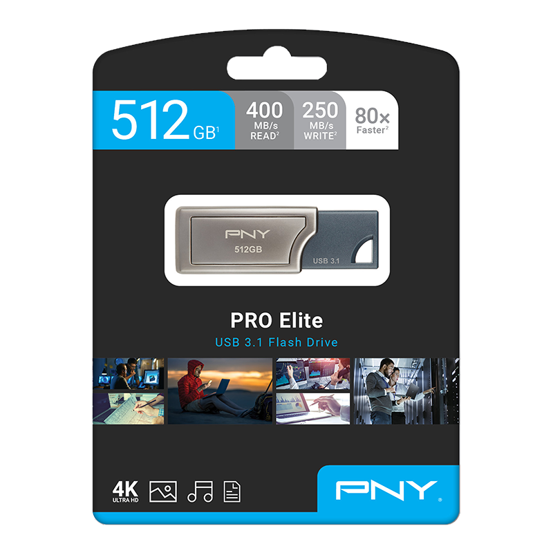 The PNY PRO Elite USB 3.1 Flash Drive is built for speed, boasting not only expanded capacity but also exceptional performance, making it the ideal solution for extreme users working with the largest files and most demanding applications. With read speeds of up to 400MB/s and write speeds up to 250MB/s, the PRO Elite USB 3.1 Flash Drive is up to 80x faster than standard PNY USB 2.0 Flash Drives. The PRO Elite is designed with both performance and convenience in mind, and is the perfect solution for transferring and storing large documents, high-resolution photos, and HD videos quicker and easier than ever before. It is compatible with USB 3.1 Gen 1/USB 3.0 equipped PC and Mac desktop and laptop computers, and backwards compatible with USB 2.0.