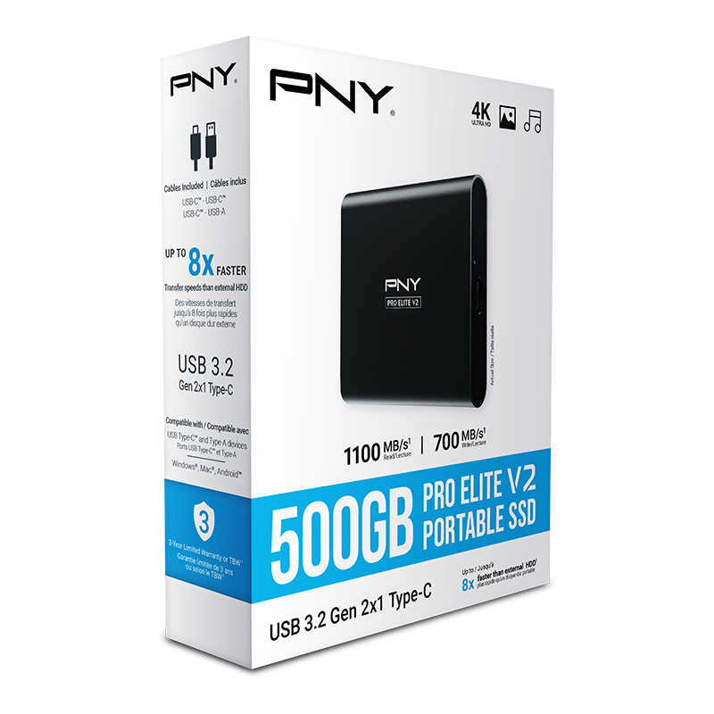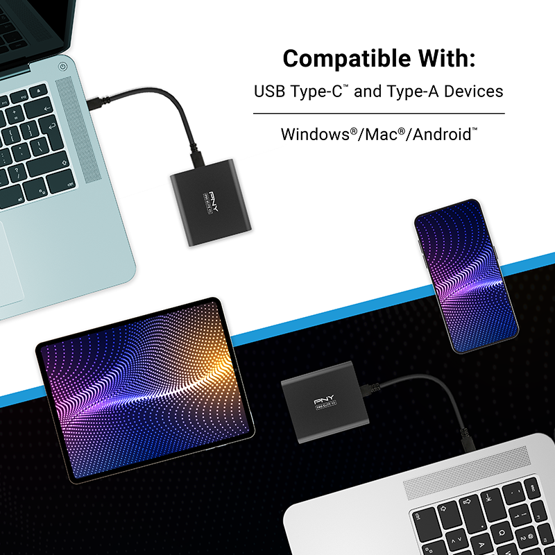 The Pro Elite V2 USB 3.2 Gen 2x1 Type-C Portable SSD is the next generation in mobile storage, boasting not only increased storage capacity, but also exceptional performance. It’s designed to be a mobile storage solution superior to previous generations of USB-A portable SSD’s, as well as traditional USB 3.0 flash drives, allowing for even faster transfer and storage of files on the go. The Pro Elite V2 USB 3.2 Gen 2x1 Type-C Portable SSD is compatible with both USB-C and USB-A host devices, and the included Acronis True Image Data Protection Software easily backs up data.