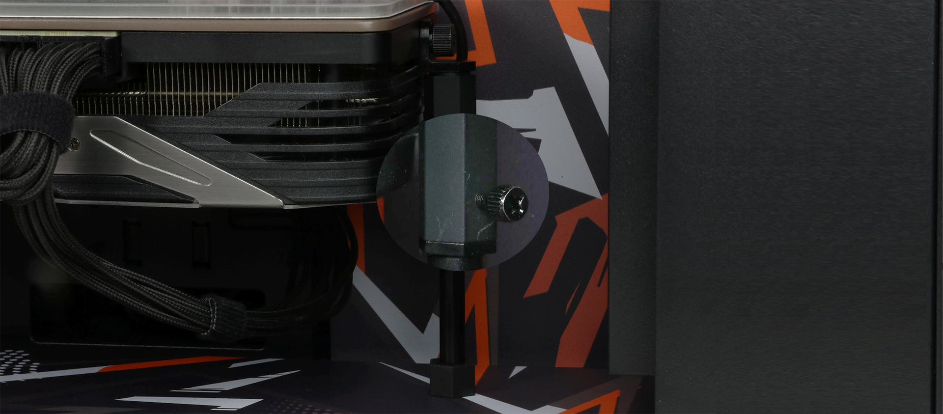 Adjust the length of the main body using the tool-less (thumb) screw so the holding kit lines up below your second graphics card.