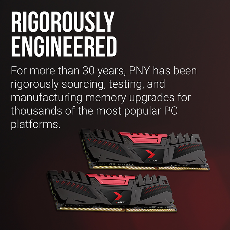 PNY XLR8 DDR4 memory modules are rigorously engineered and tested to ensure peak performance in even the most challenging gaming environments.