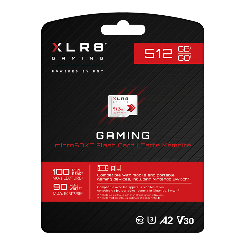 The PNY XLR8 Gaming Class 10 U3 V30 A2 microSD Flash Memory Cards are the ultimate gaming solution for mobile and portable console gaming on smartphones, tablets, and portable gaming consoles such as Nintendo Switch® and Steam Deck™ devices. The XLR8 Gaming microSD Cards are rated Class 10, U3 with V30 Video Speed to easily download and transfer all your favorite games to your device for the ultimate gaming experience. What’s more, they offer incredible performance of 100MB/s read and 90MB/s write to allow even the most dedicated gaming enthusiasts to game with confidence, and accelerate their gaming experiences. Take your game to the next level with A2 Application Performance, which allows you to run gaming apps directly from the microSD card and helps deliver faster app launch and performance. The PNY XLR8 Gaming Class 10 U3 V30 A2 microSD Flash Memory Cards are compatible with mobile devices such as smartphones & tablets, as well as portable gaming consoles such as Nintendo Switch®, Nintendo Switch® OLED, Nintendo Switch Lite® and Steam Deck™ and are available in expanded capacities of 128GB-512GB to capture and relive your favorite gaming adventures. With the performance and storage potential of the XLR8 Gaming microSD Flash Memory Cards from PNY, you can spend less time waiting and more time playing!1,2,3,4,5